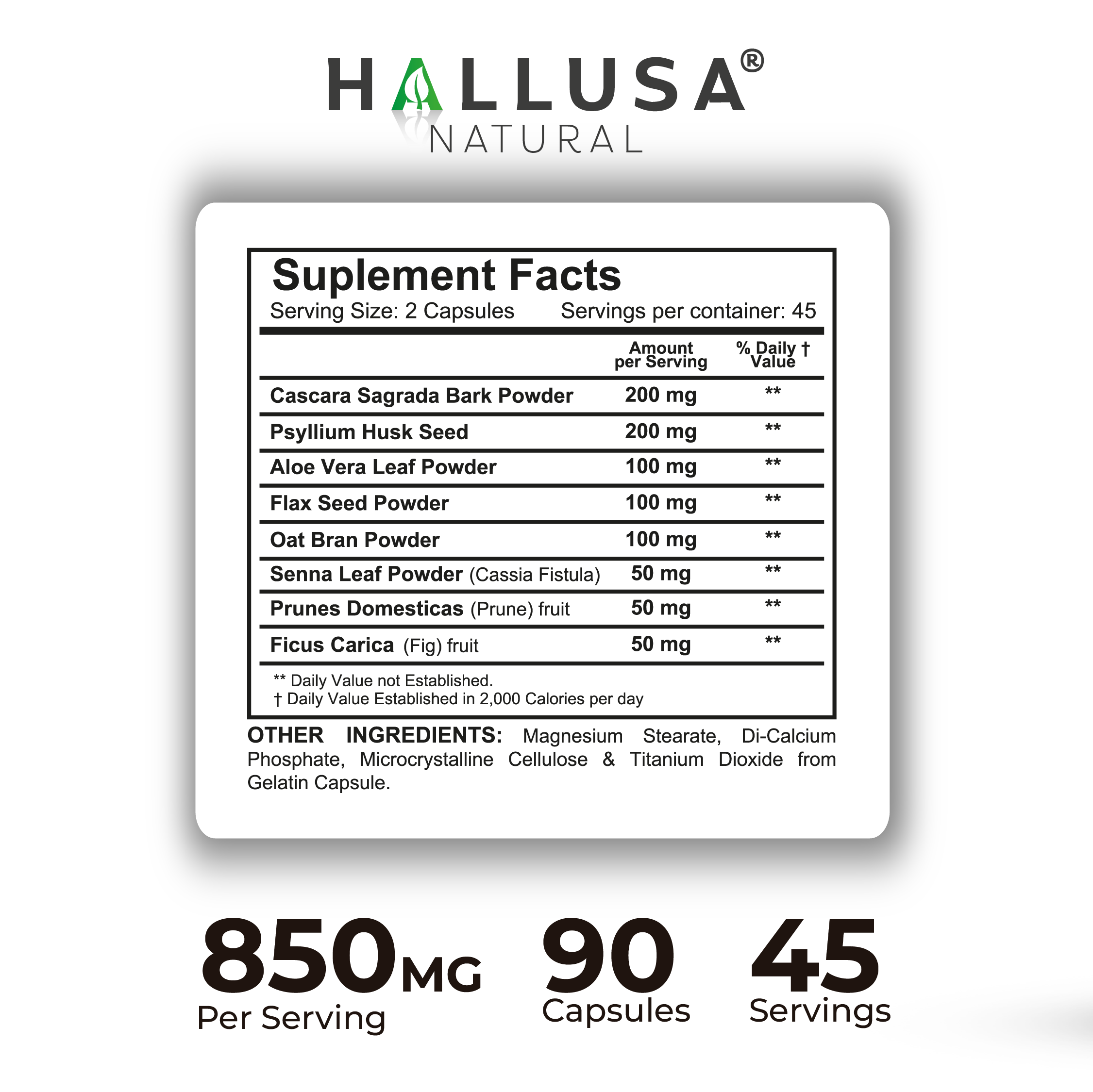 Aviso legal En HALLUSA NATURAL nos esforzamos por garantizar la exactitud de la información e imágenes de los productos. Sin embargo, pueden estar pendientes en nuestro sitio web de actualizaciones sobre cambios de presentación y/o ingredientes utilizados en la fabricación. Aunque ocasionalmente podemos enviar artículos con una presentación alternativa, siempre se garantiza la frescura. Le recomendamos que lea la información de la etiqueta del fabricante, las instrucciones y las advertencias antes de usar estos productos y no solo confíe en la información proporcionada por HALLUSA NATURAL.