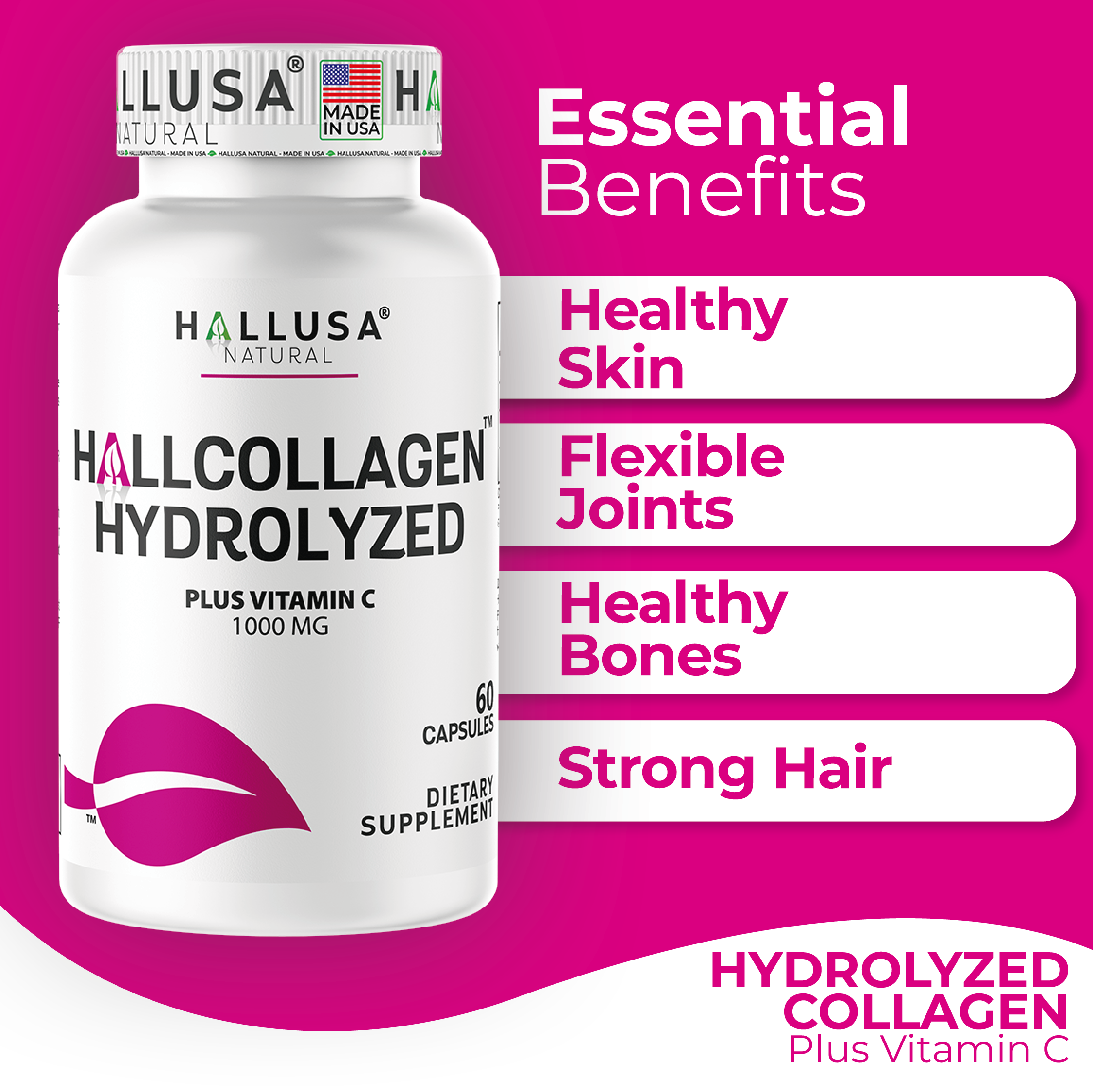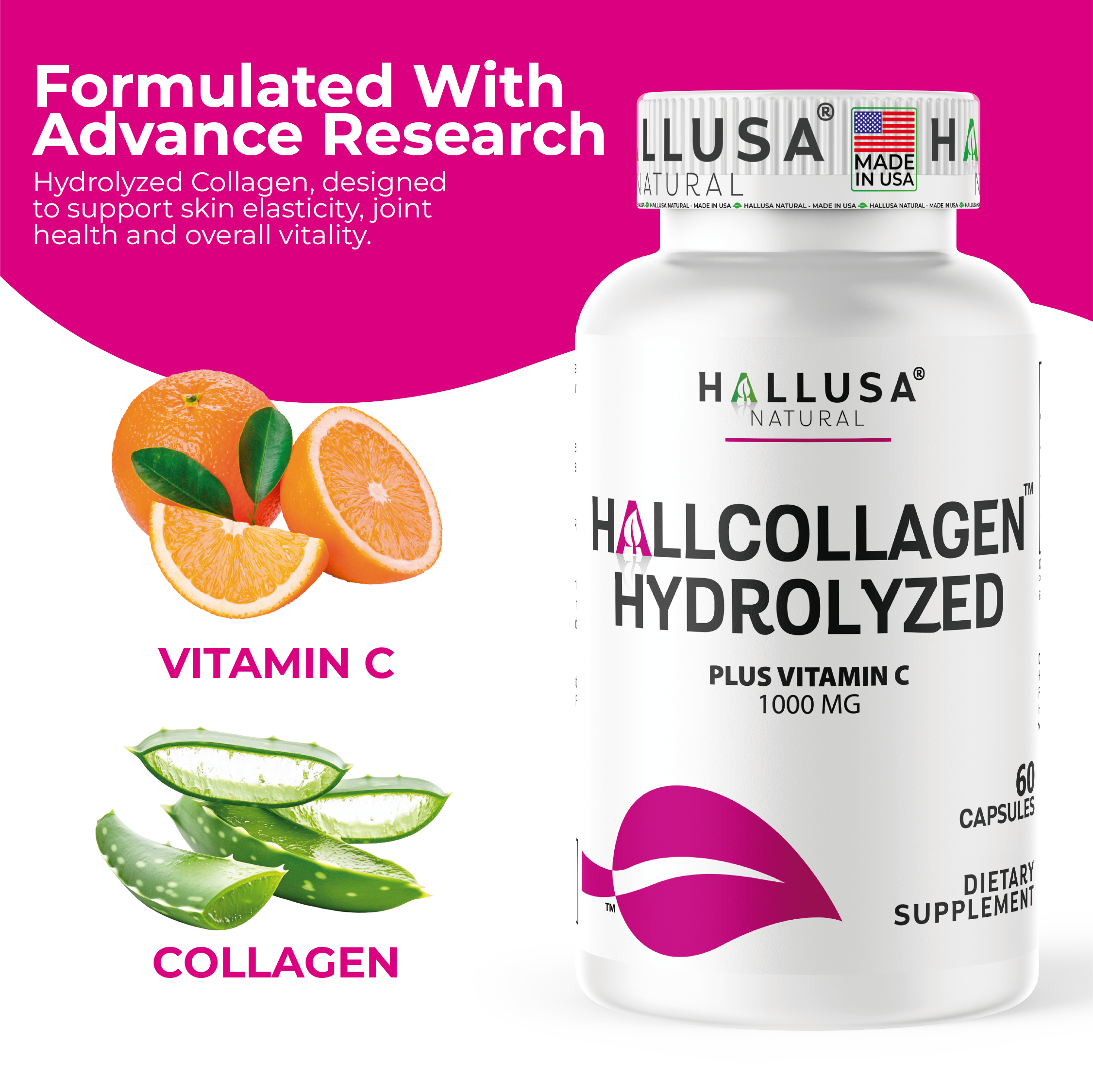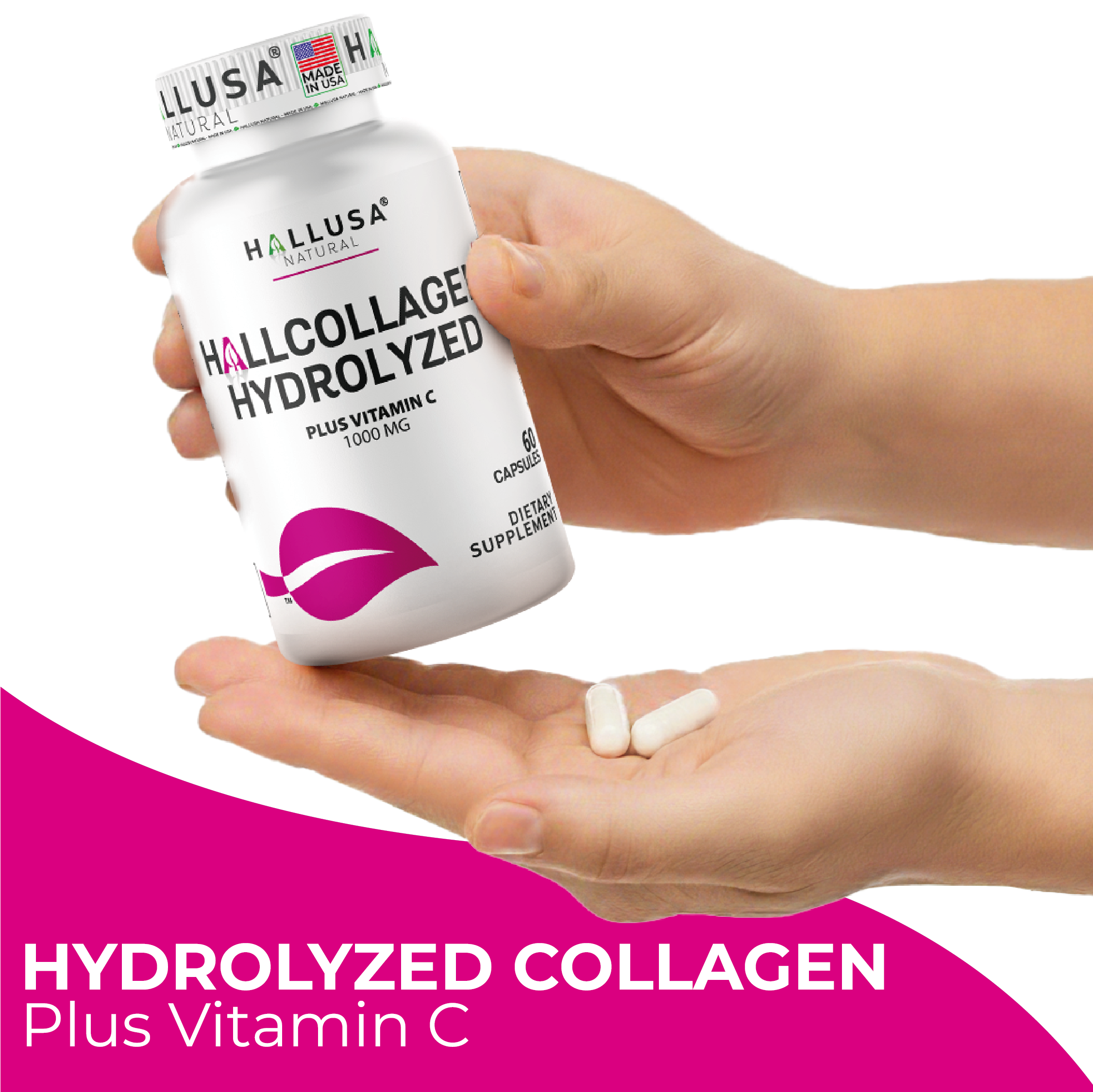 Hydrolyzed Collagen PLUS Vitamin C 1000 MG by HALLUSA NATURAL