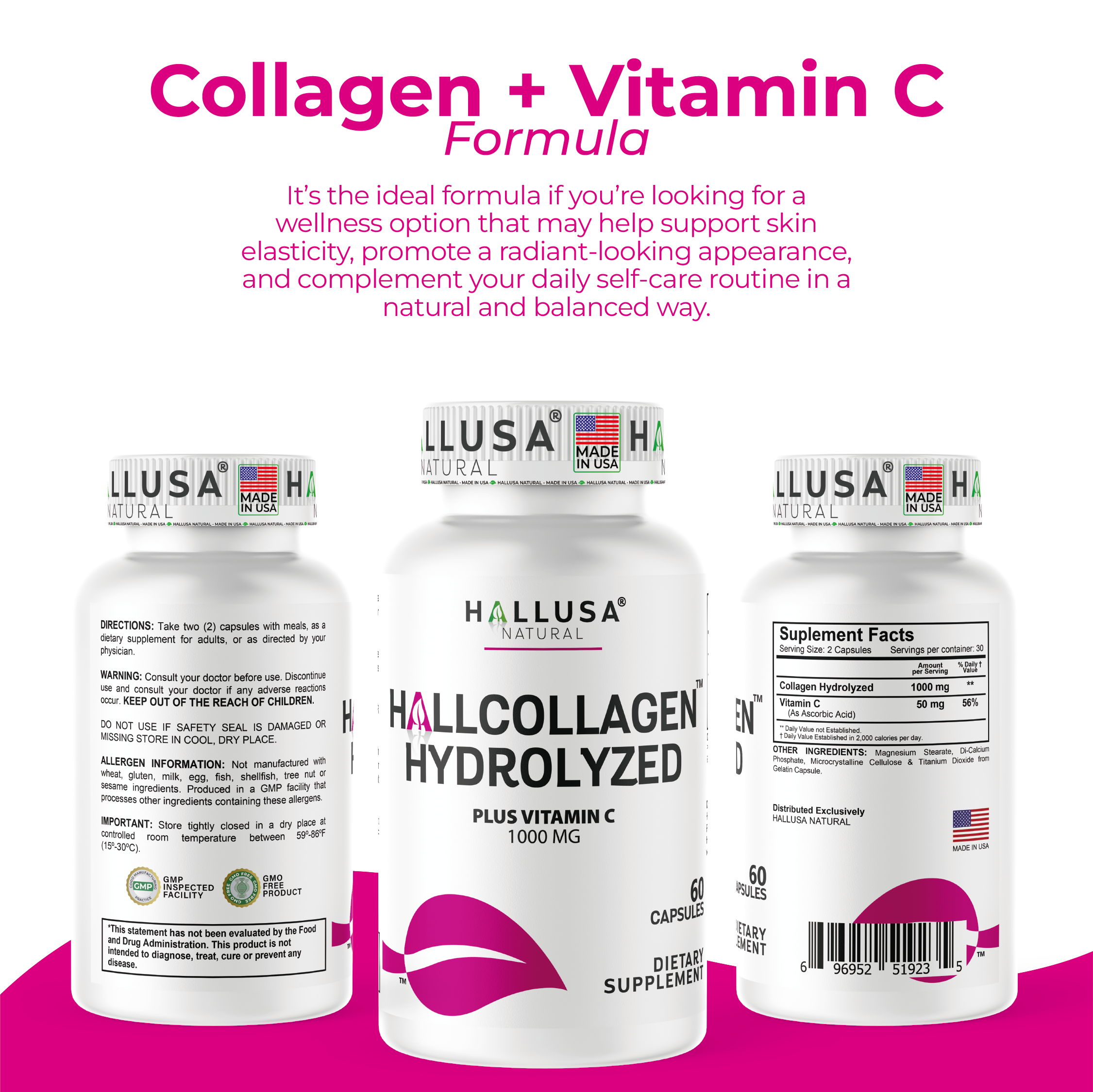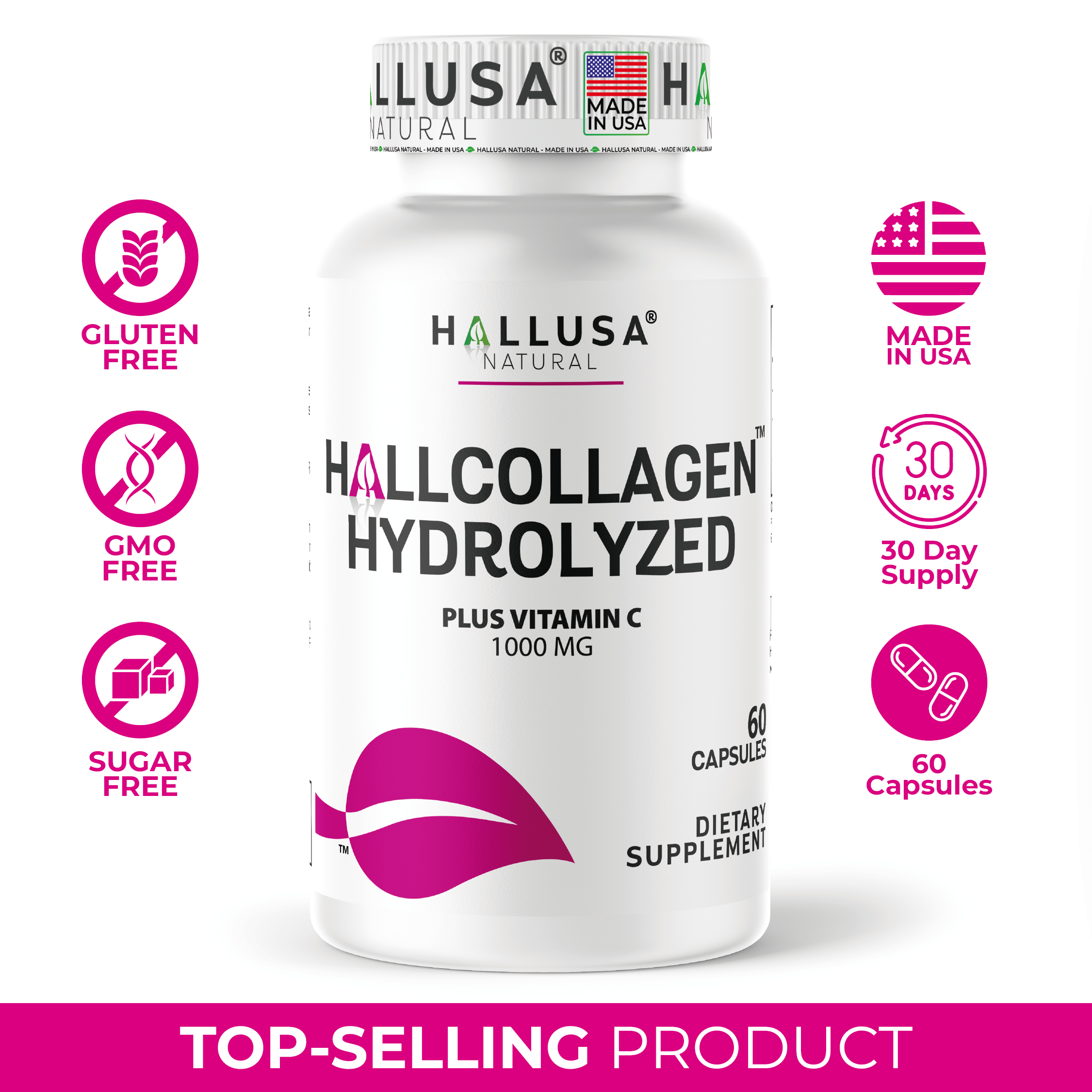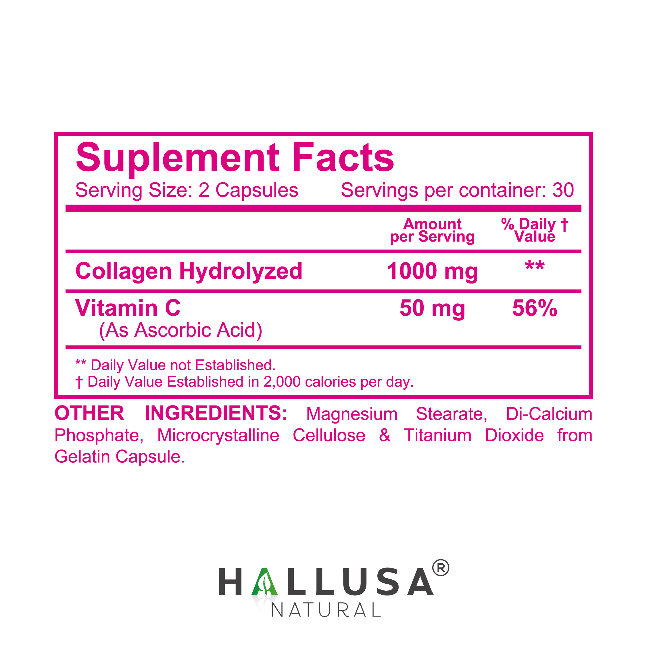 Hydrolyzed Collagen PLUS Vitamin C 1000 MG by HALLUSA NATURAL
