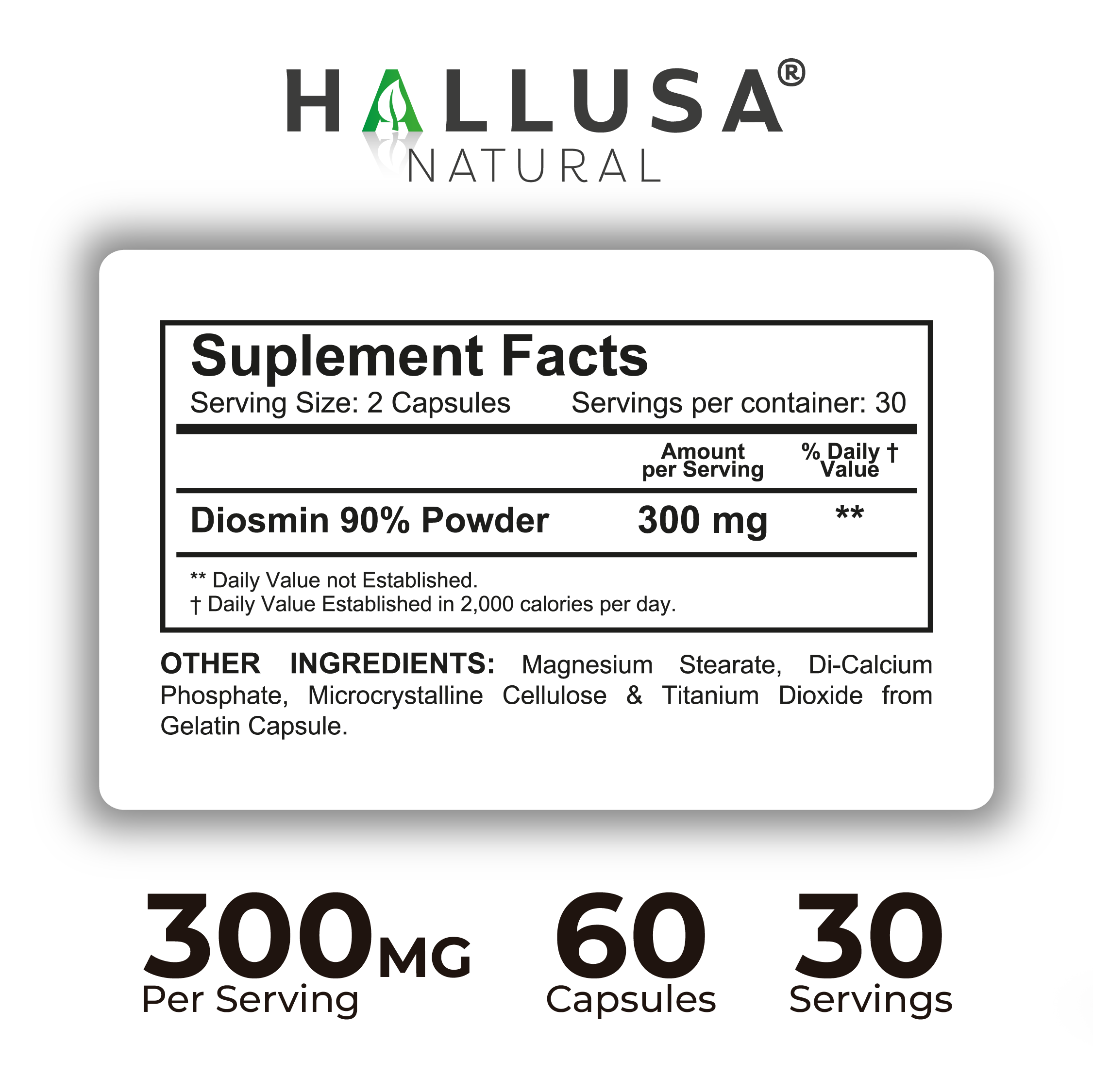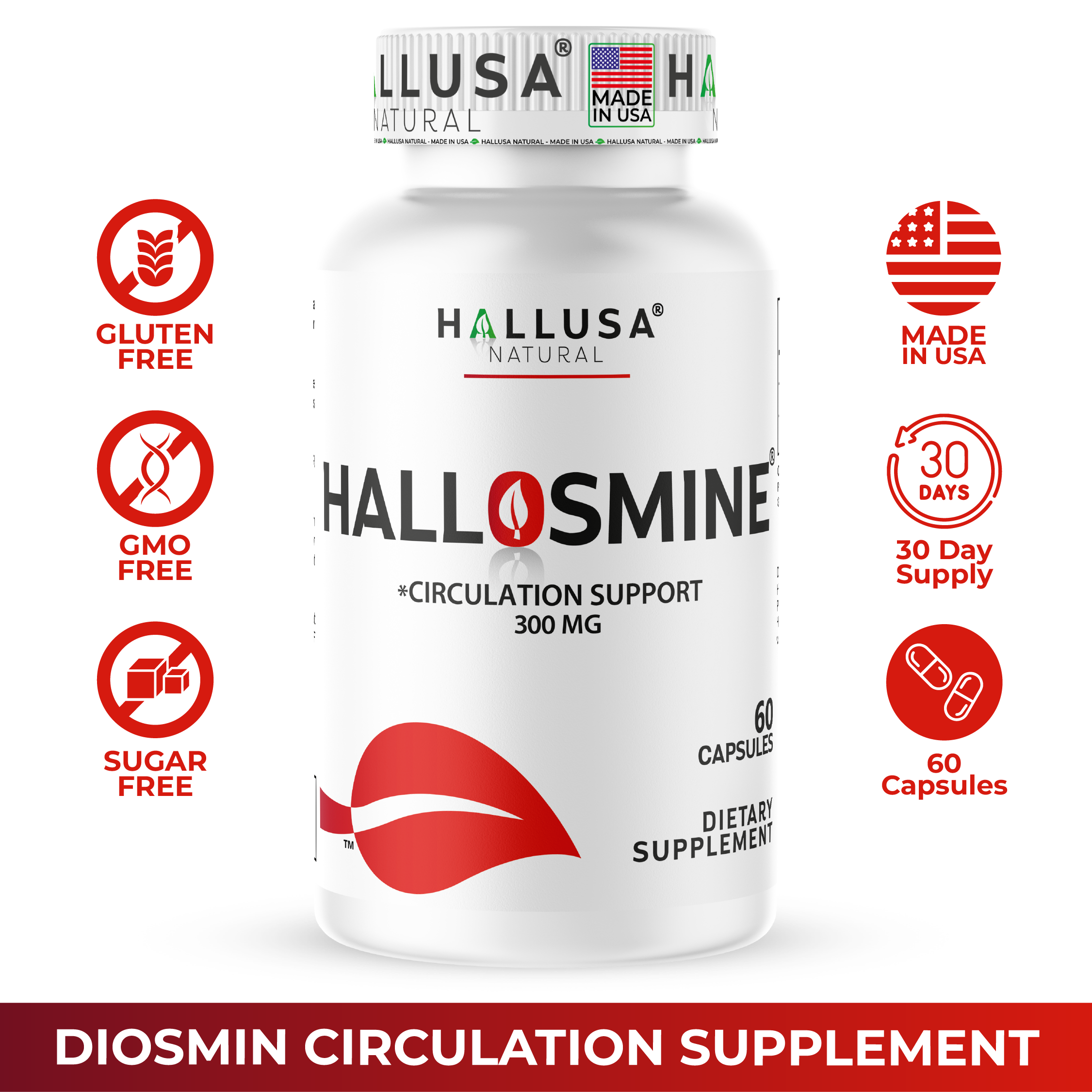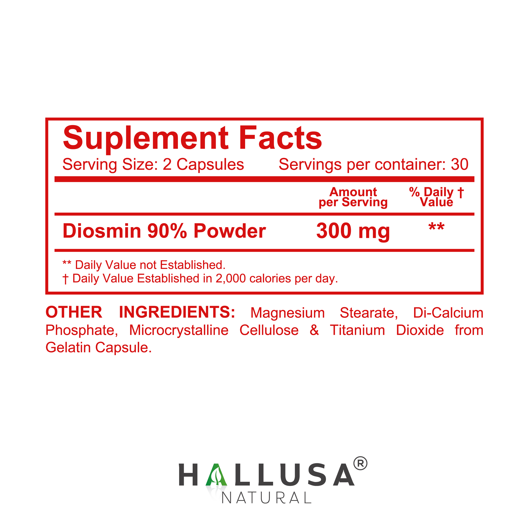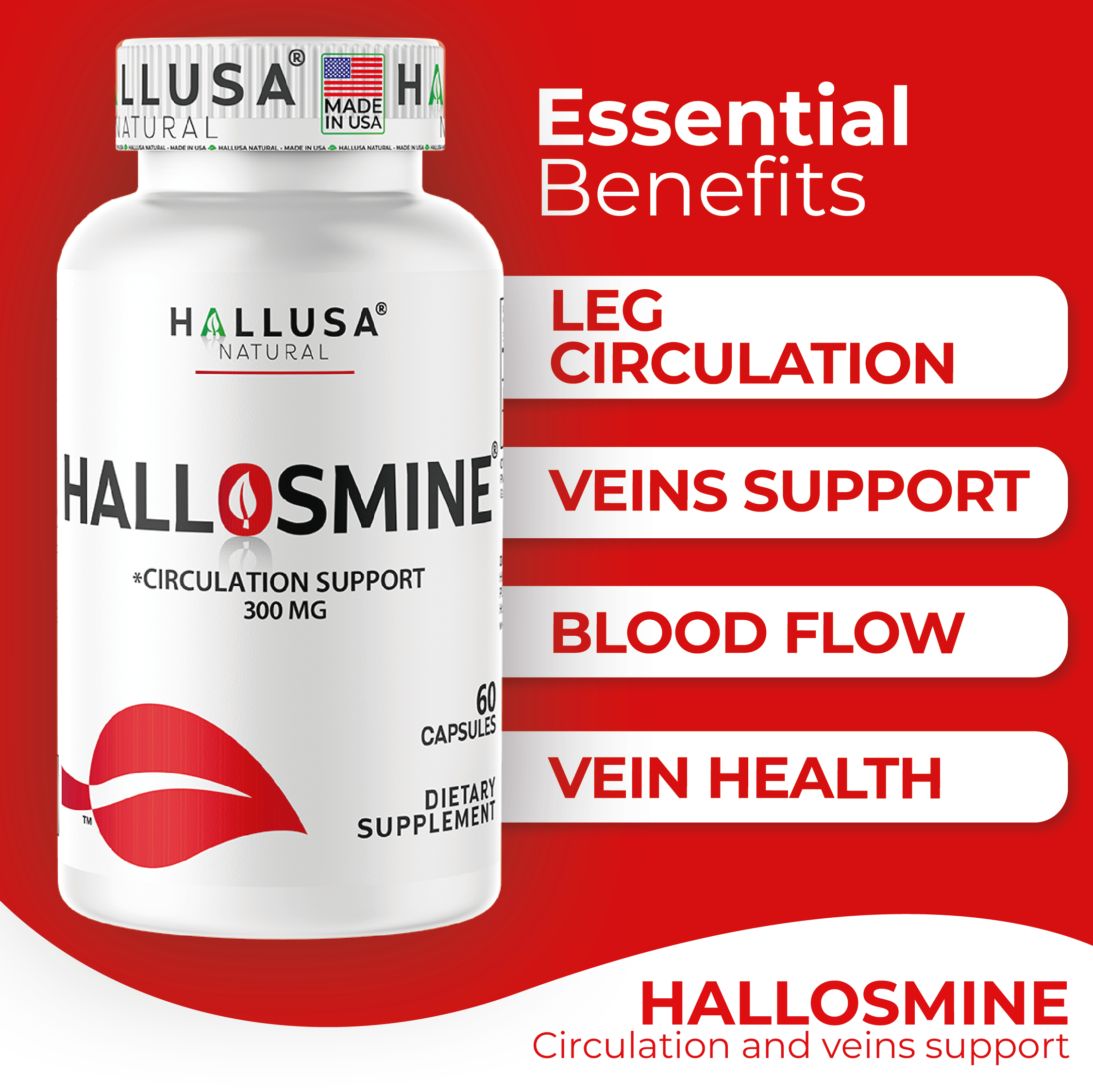 Hallusa Natural | Hallosmine Diosmin 300mg | Circulation & Vein Support Supplement | Leg Circulation, Varicose Veins, Blood Flow, Lymphatic Drainage Support | Blood Circulation Supplement | 60 Capsules