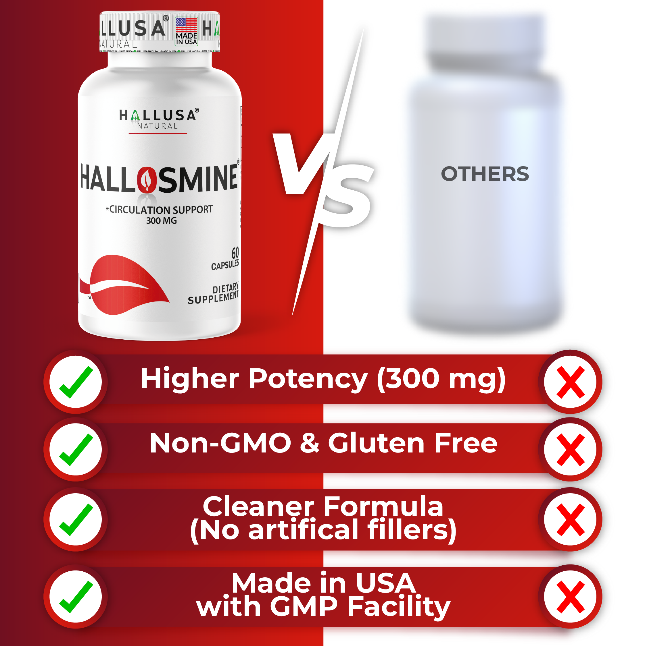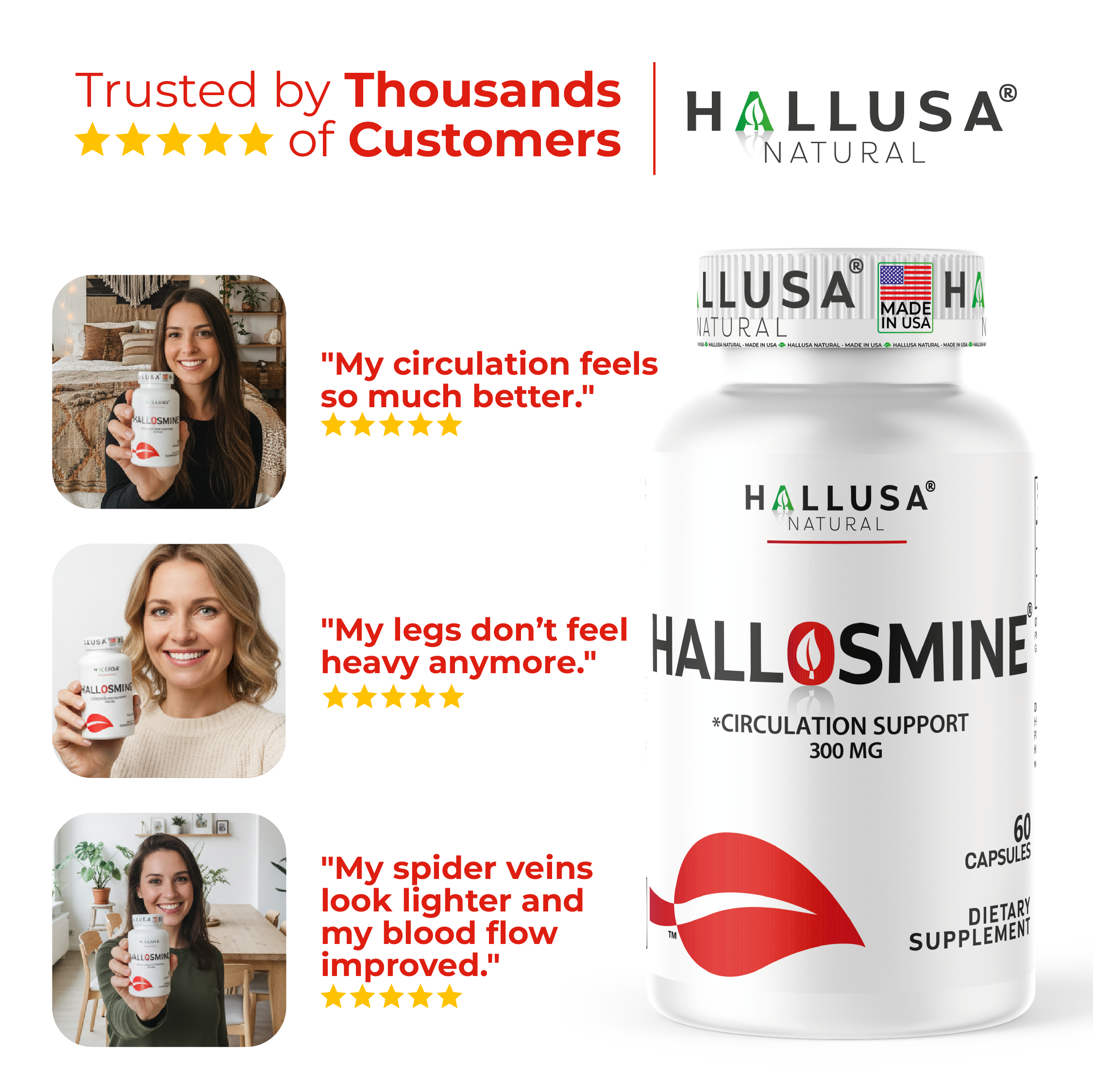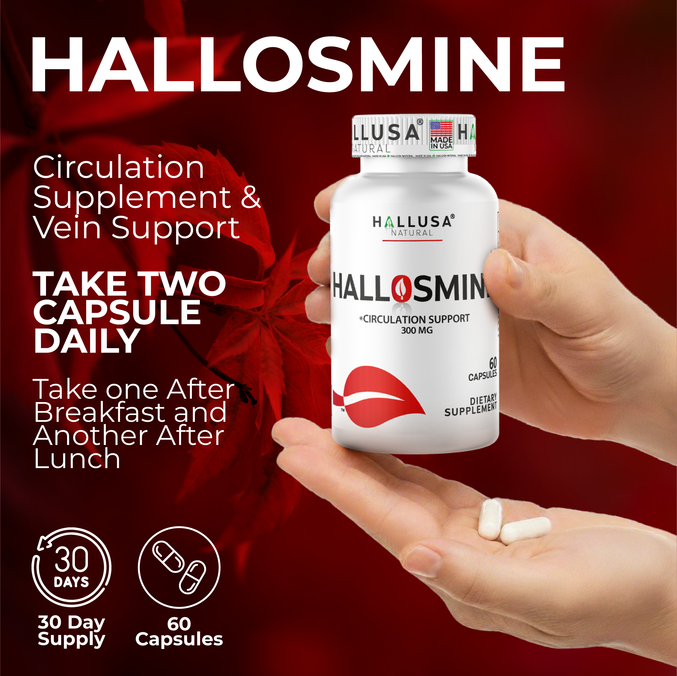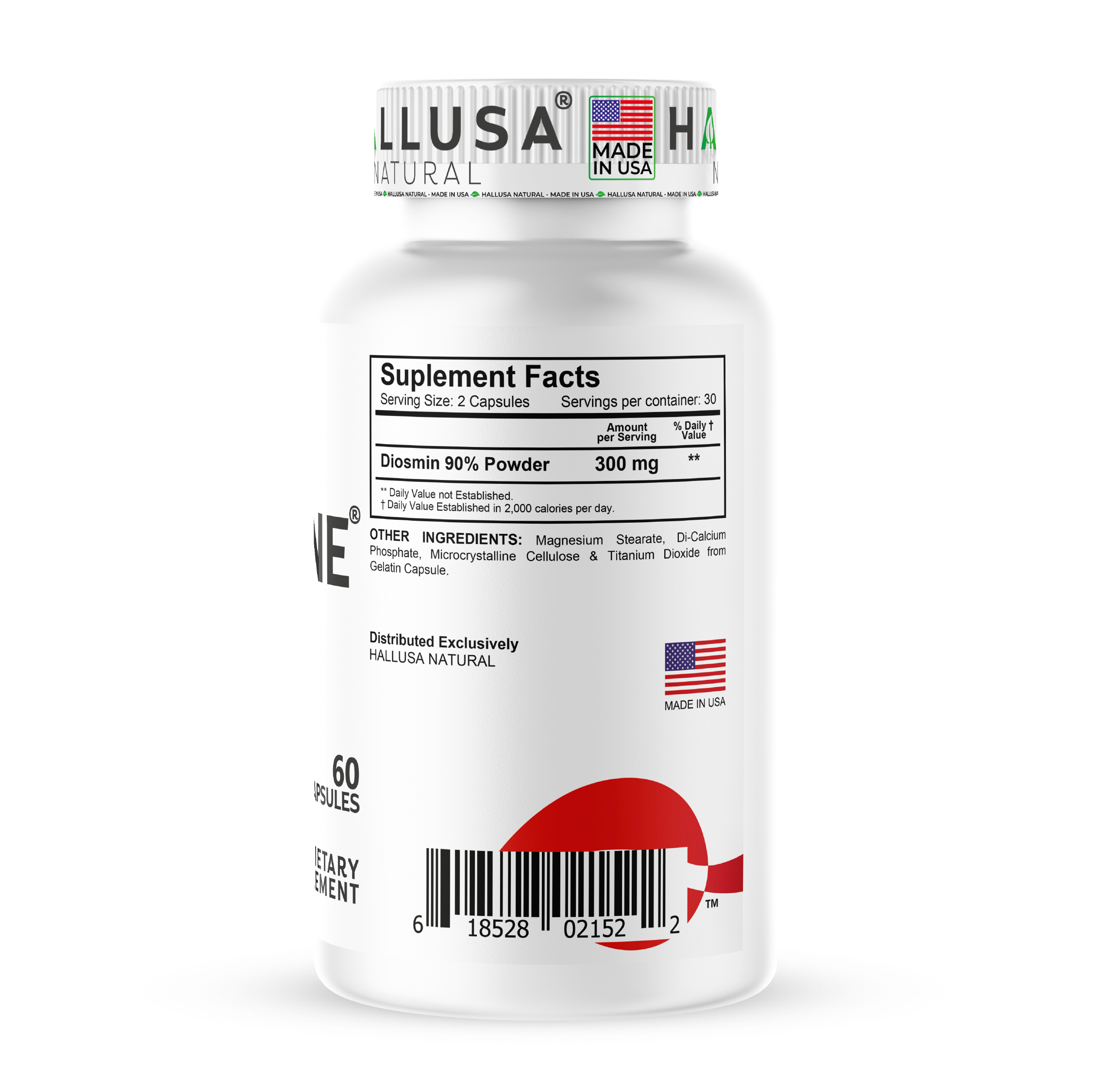 Hallusa Natural | Hallosmine Diosmin 300mg | Circulation & Vein Support Supplement | Leg Circulation, Varicose Veins, Blood Flow, Lymphatic Drainage Support | Blood Circulation Supplement | 60 Capsules
