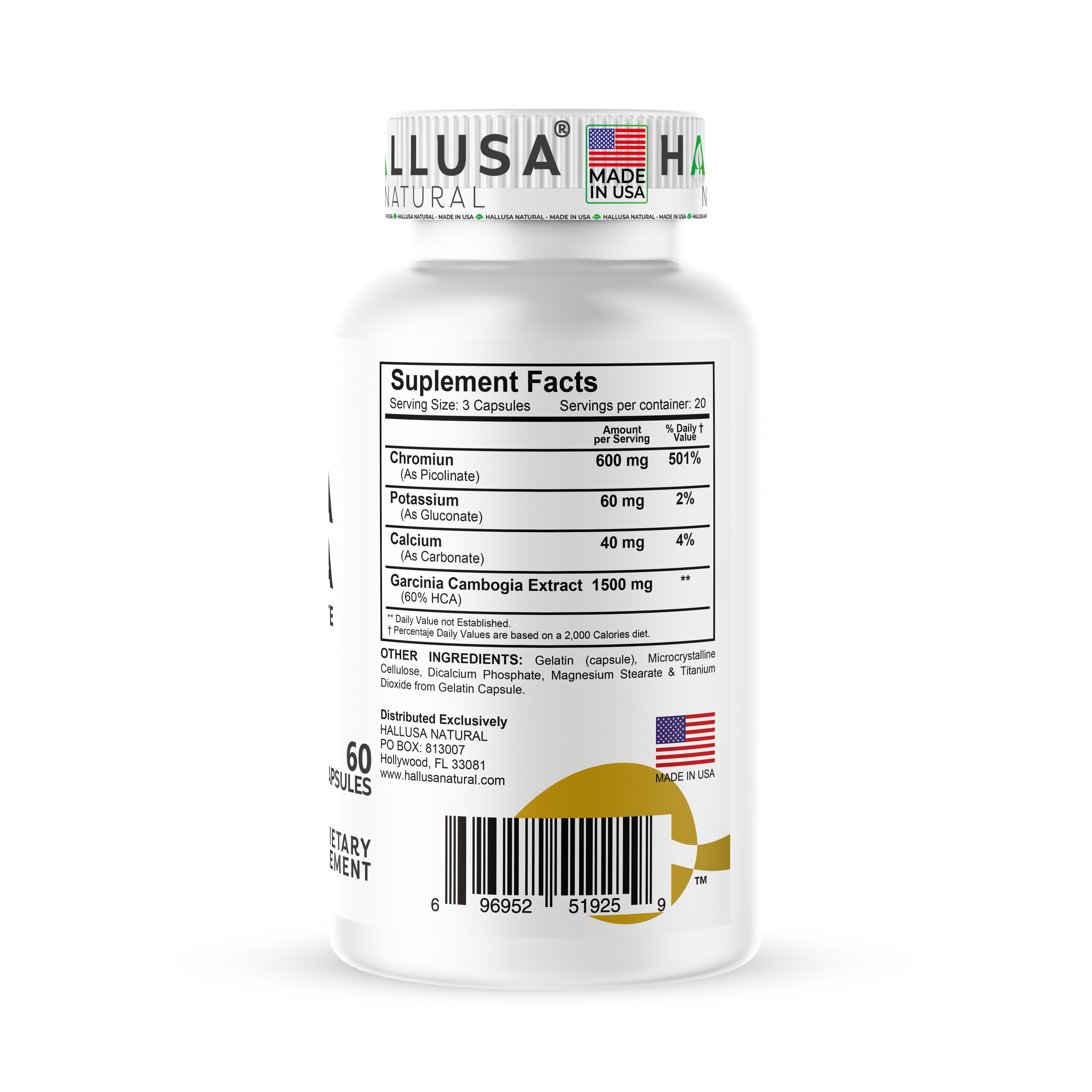 Garcinia cambogia PLUS picolinato de cromo 1500 mg de HALLUSA NATURAL