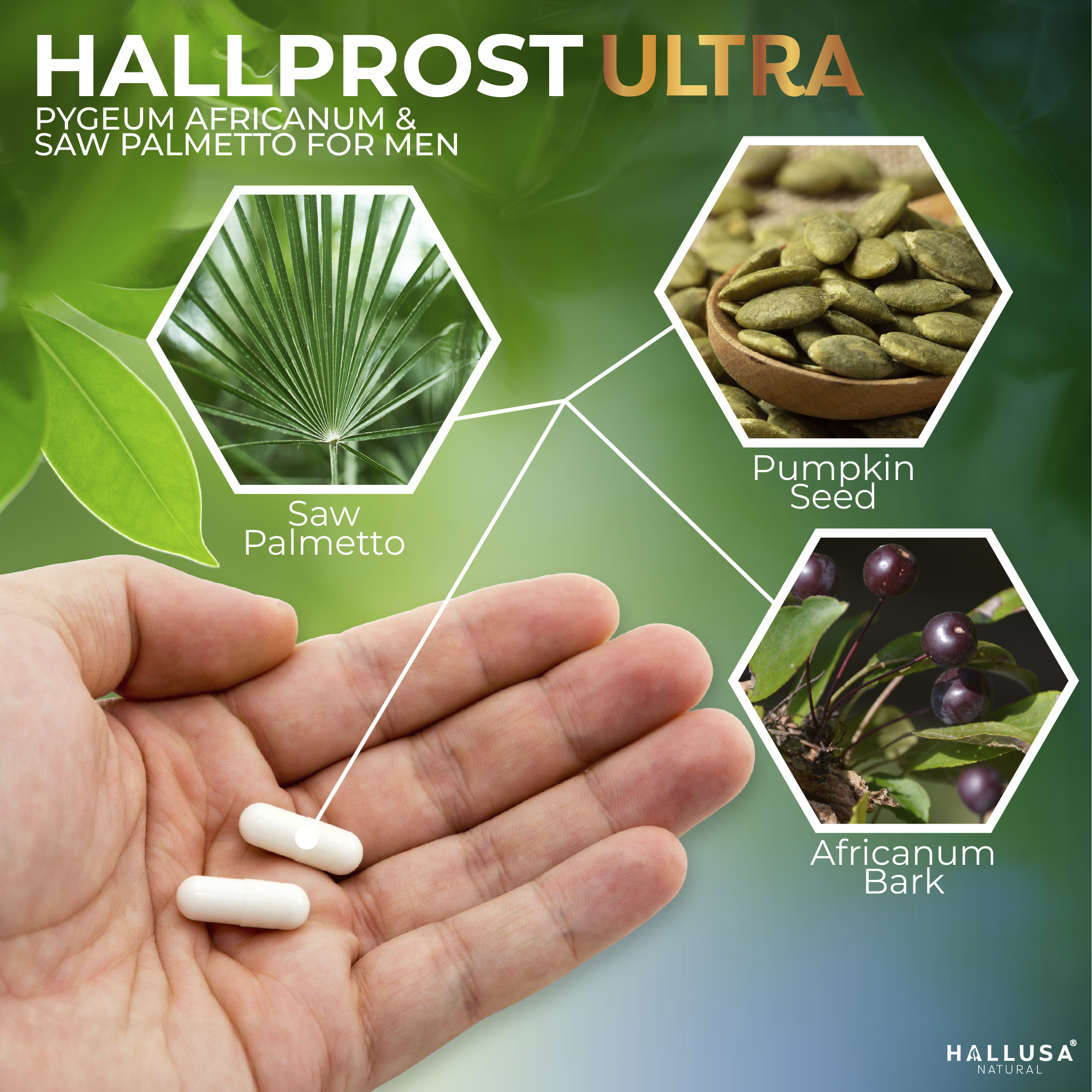 HALLPROST ULTRA: Vitamin E, Magnesium, Zinc, Saw Palmetto, Pygeum, Pumpkin Seed, Lycopene